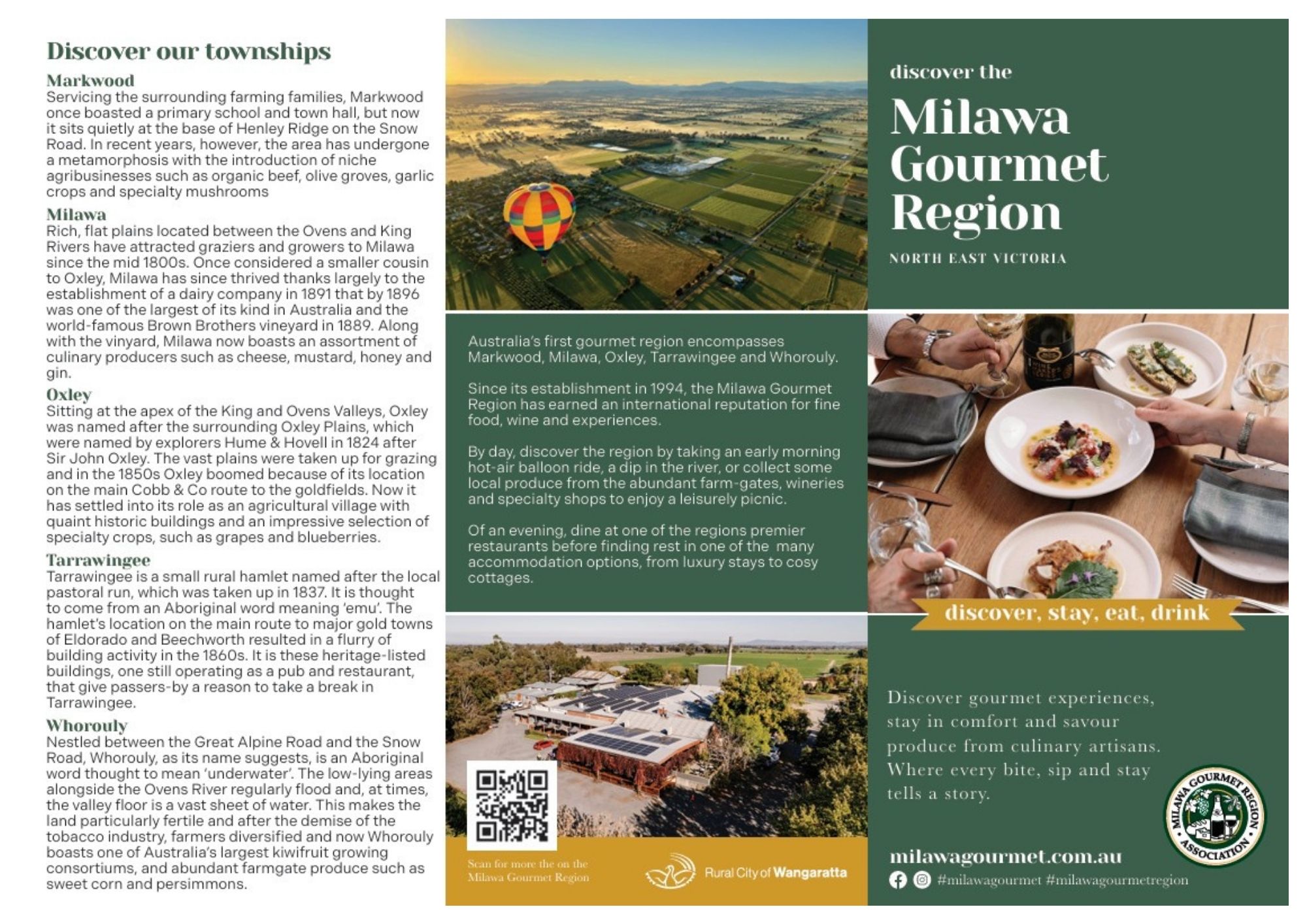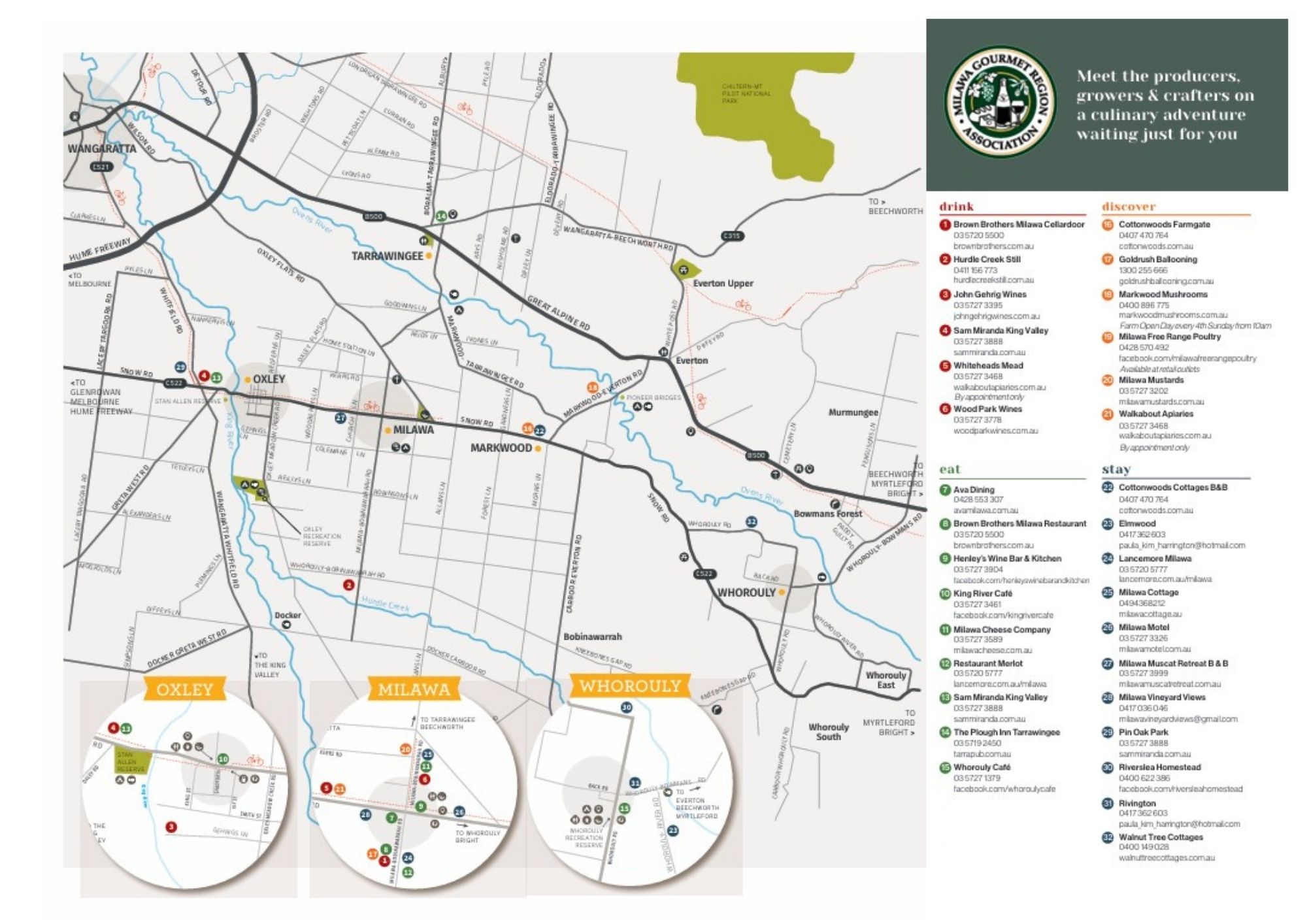 Pick up a copy of the Milawa Gourmet Region Brochure from local businesses and/or visitor information centres